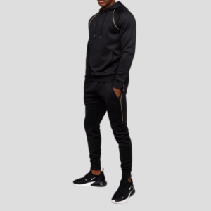 Men Piped Poly Hoodie Tracksuit Black/Gold