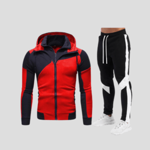 Mens Contrast Side Stripe Red and Black Tracksuit