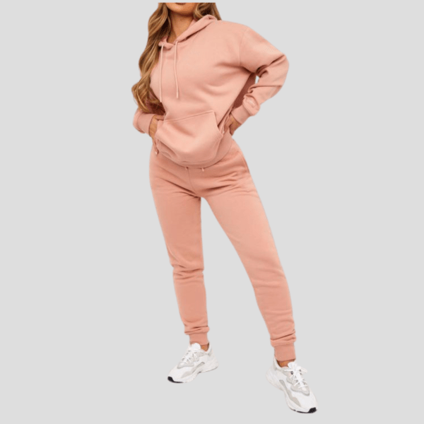 Introducing our Ladies Basis Oversized Hoodie Tracksuit, the ideal balance of comfort, style, and casual elegance. Enhance your clothes for a relaxing collection with this effortlessly chic ensemble, made for the modern woman who appreciates both leisure and fashion-forward views. The oversized hoodie’s relaxed shape and dropped shoulders provide a warm yet fashionable design that reflects the spirit of casual luxury. This hoodie is made of high-quality materials that feel soft against your skin, offering the best comfort for all-day wear.