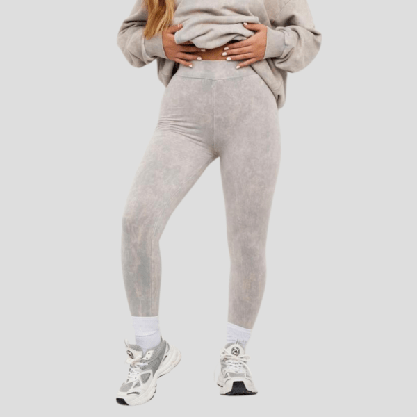 These leggings’ unique stone wash treatment gives a sense of originality and style to your look. This unique wash effect adds an understated historic and lived-in feel to these leggings, making them a standout choice for people who value a fashion-forward edge in their collection. The narrow fit design not only highlights your curves but also gives you a modern and sleek image.