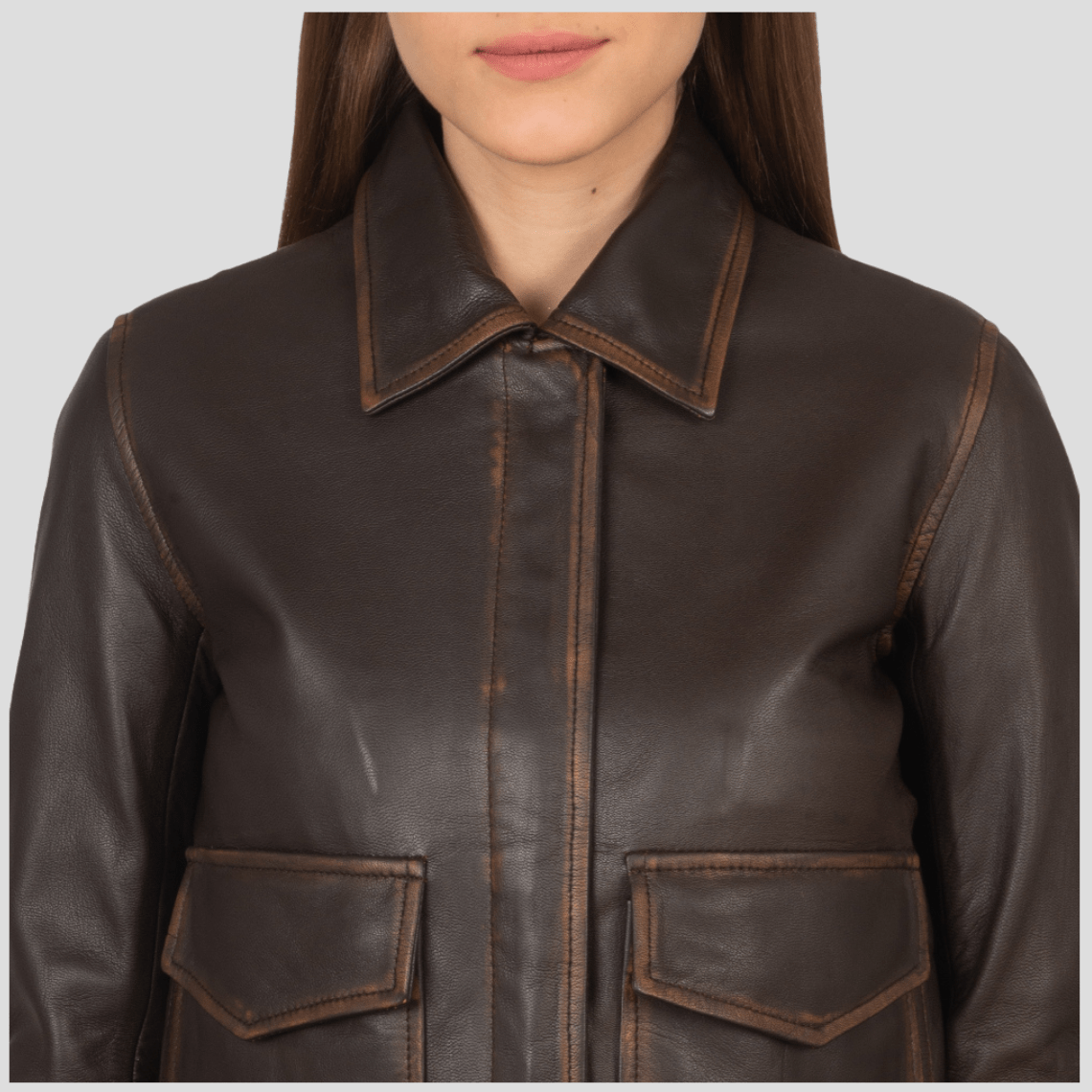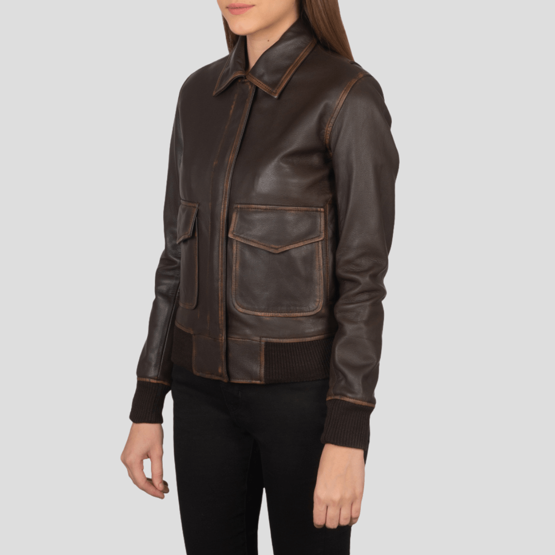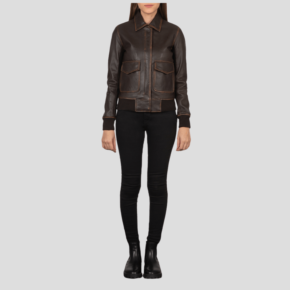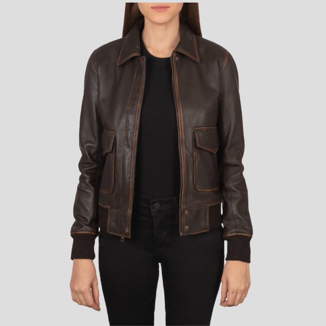 Women Brown Leather Bomber Jacket-Premium Leather Bomber- SportStar Best Leather Jacket For Womens