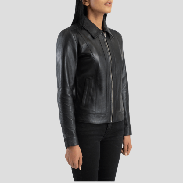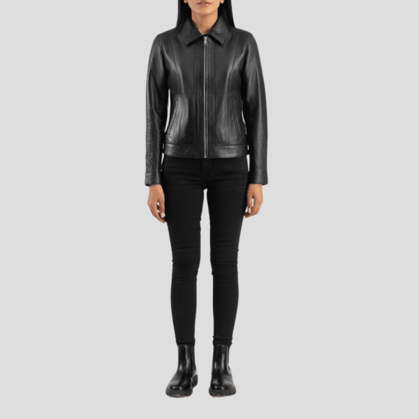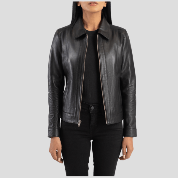 Womens Black Classic Collar Leather Jacket-SportStar Stylish Womens Leather Jacket-Premium Leather Fashion
